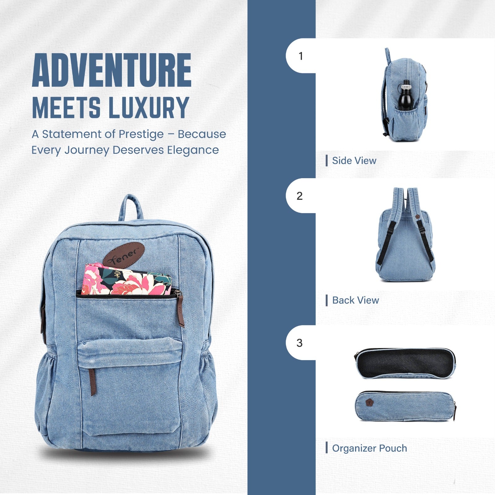 Balance classic design and modern function with this 18L Washed Blue denim backpack. Engineered with a padded laptop compartment and cable organizer pouch, it fits seamlessly into daily routines and spontaneous weekend getaways. Multiple compartments and an enzyme finish give it texture, durability, and edge.